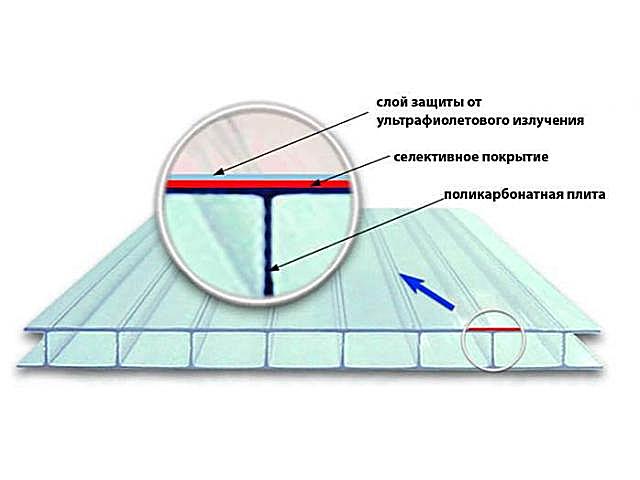 *нижний слой – это просто сплошной лист поликарбоната без защиты от ультрафиолета.